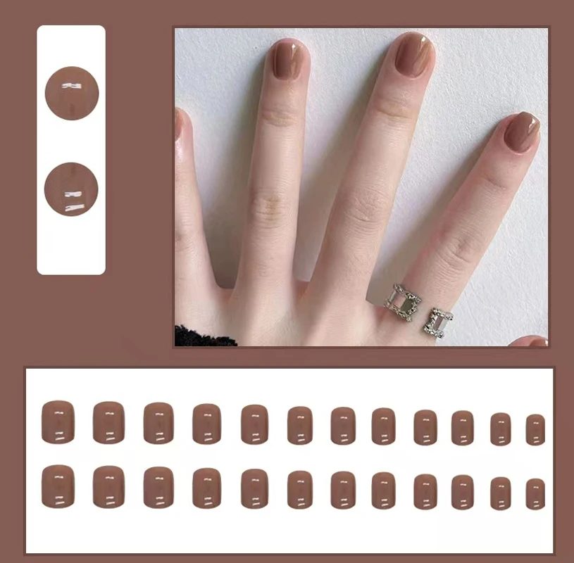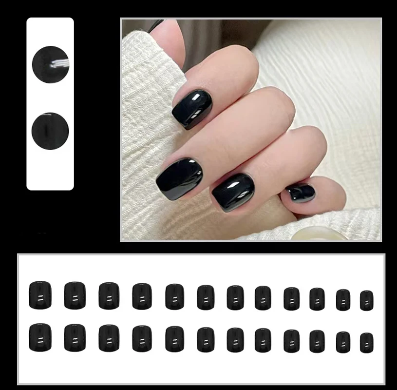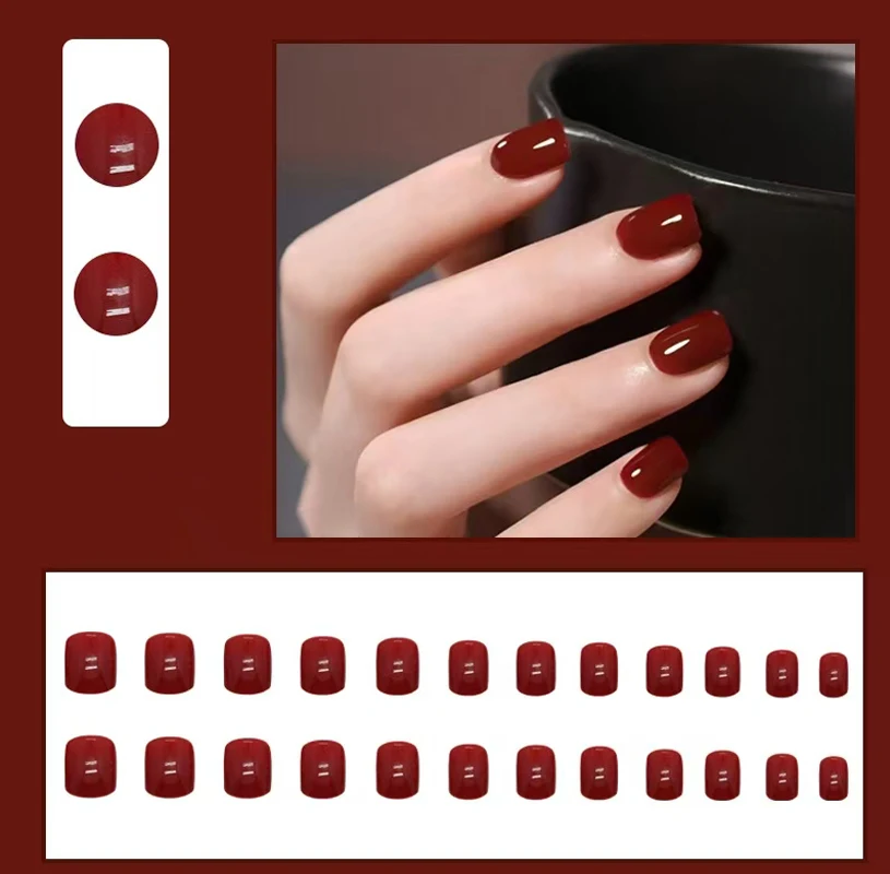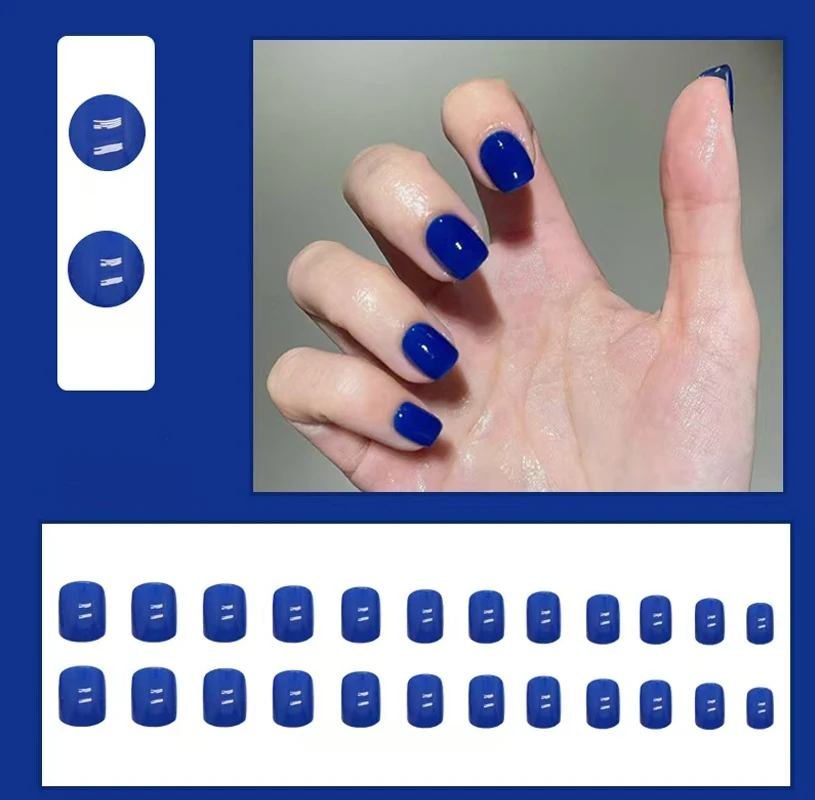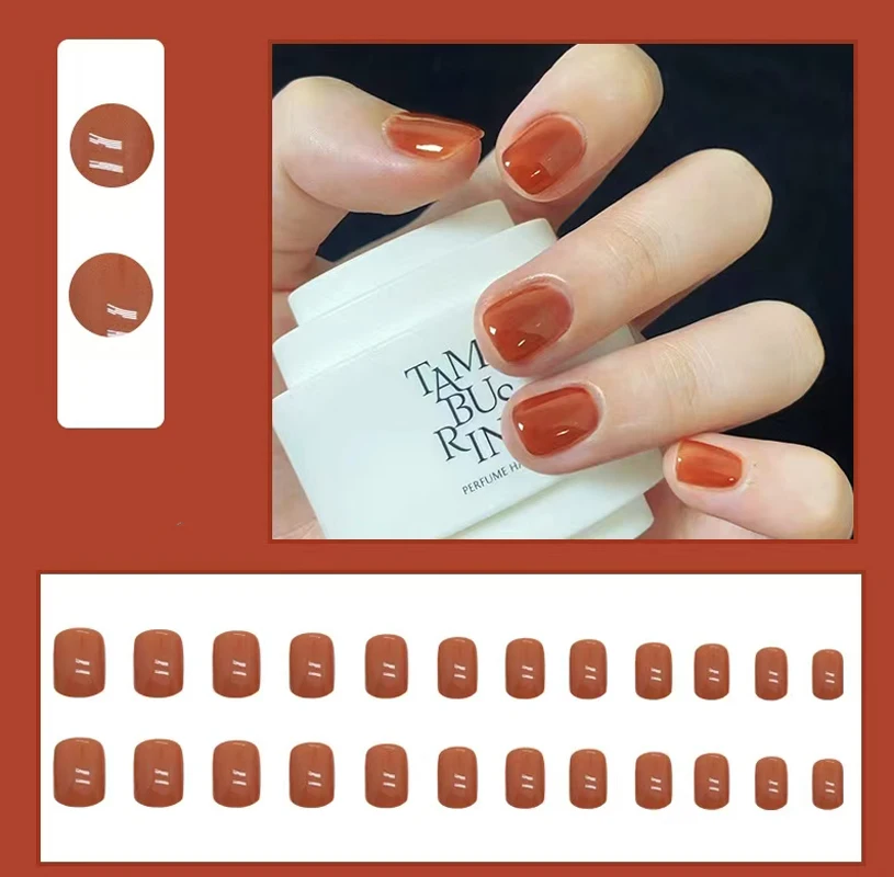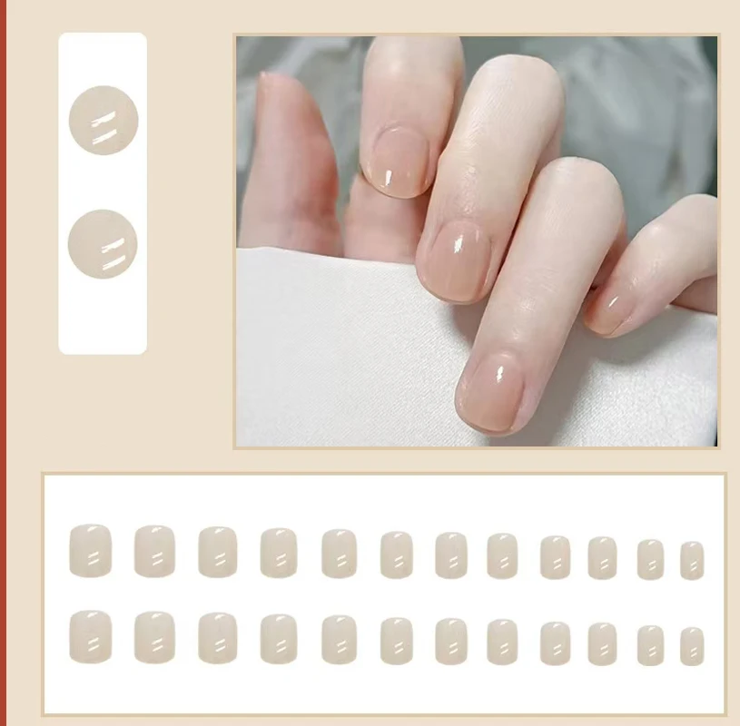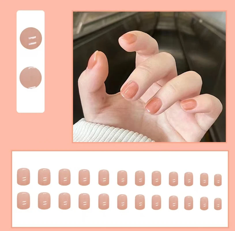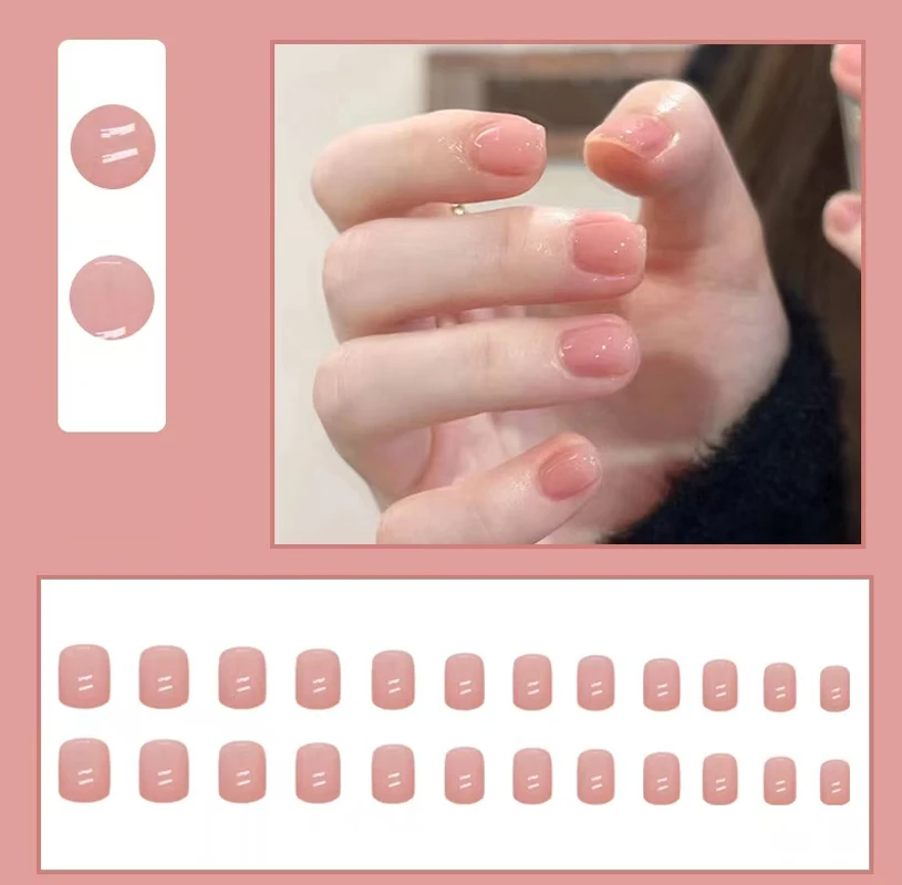 24Pcs Bright False Nails with Square-round Design Wearable Fake Nails Simple Art