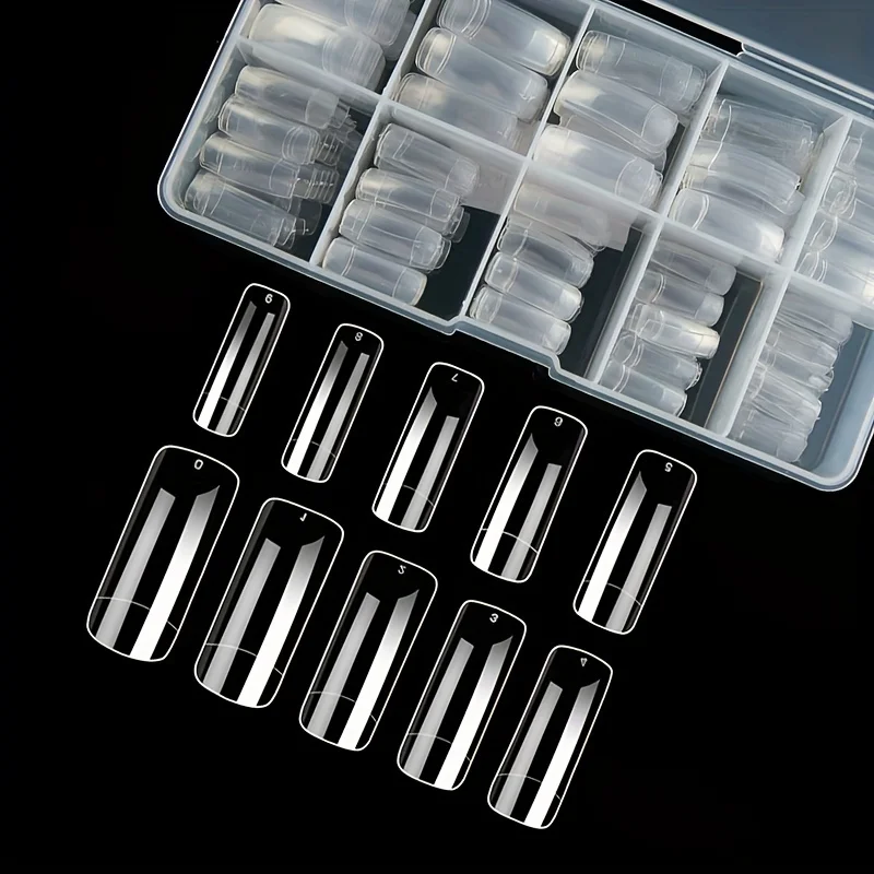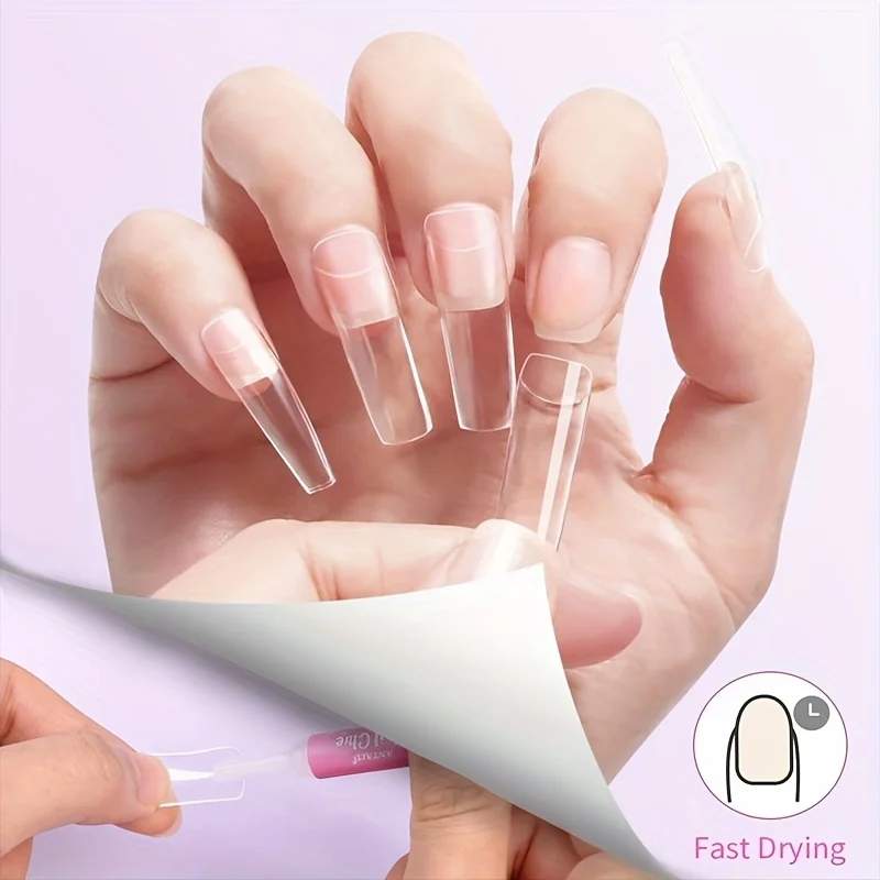 500 Pieces of Transparent and Natural-Color Nail Tips, Half a Set of Square Flat