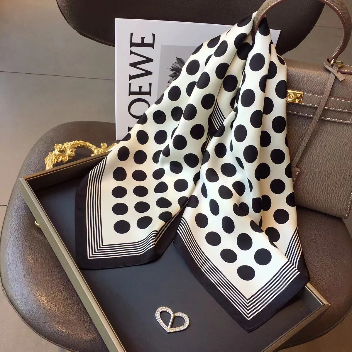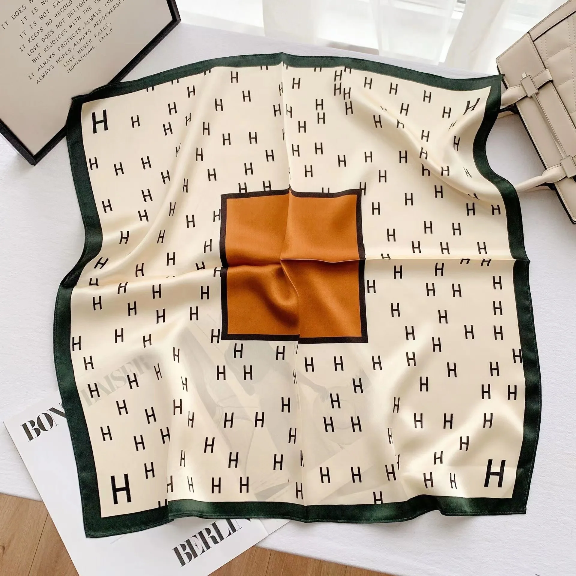 70*70cm Luxury Floral Print Silk Square Scarf Women Foulard Hairband Hands Bag R