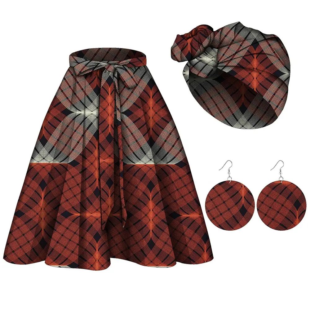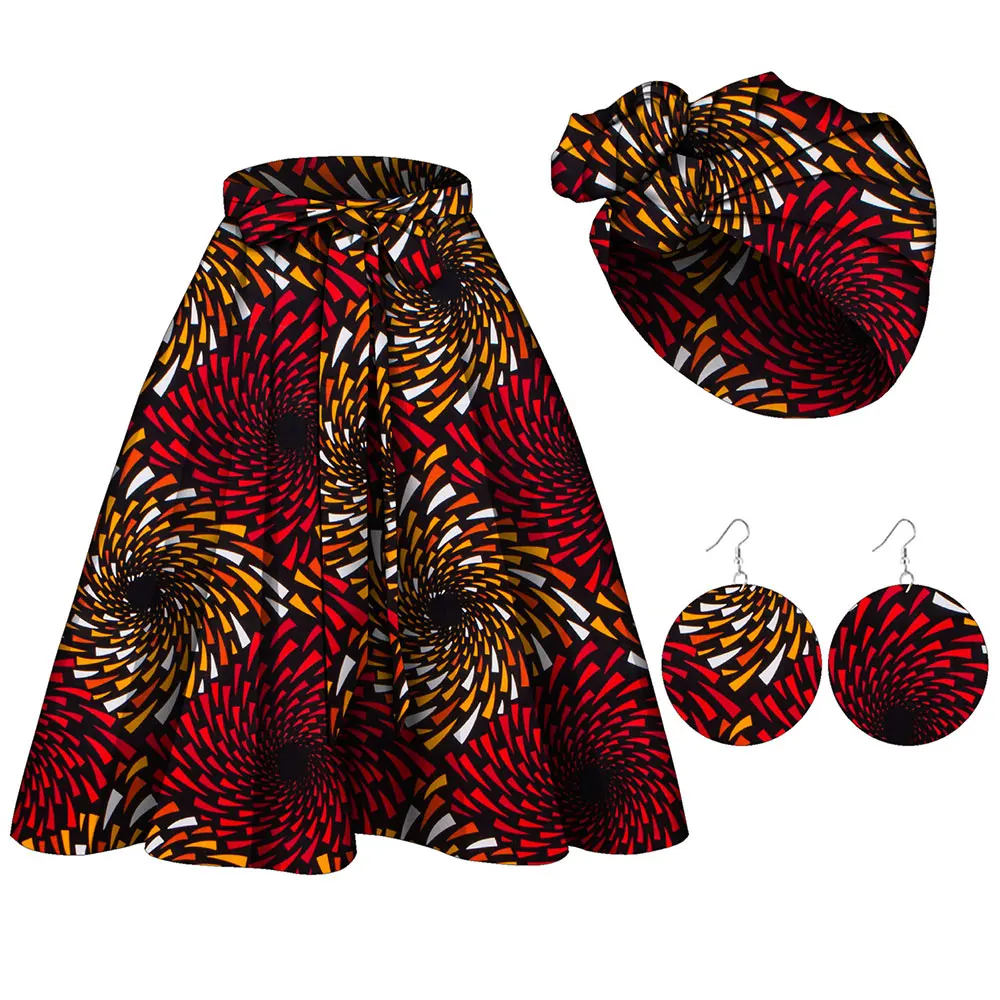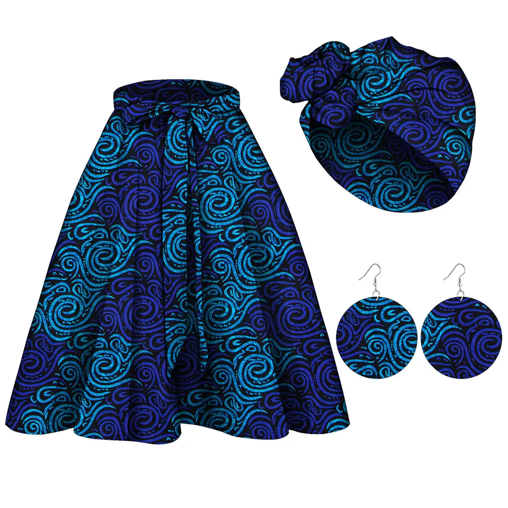 African Women's Skirt Headscarf Earrings Combination Fashionable and Versatile W