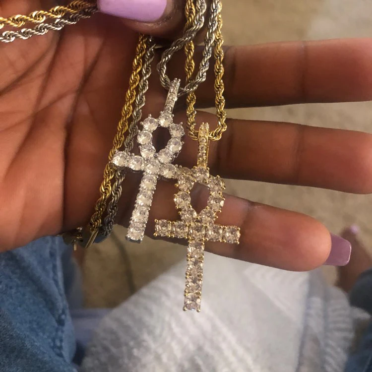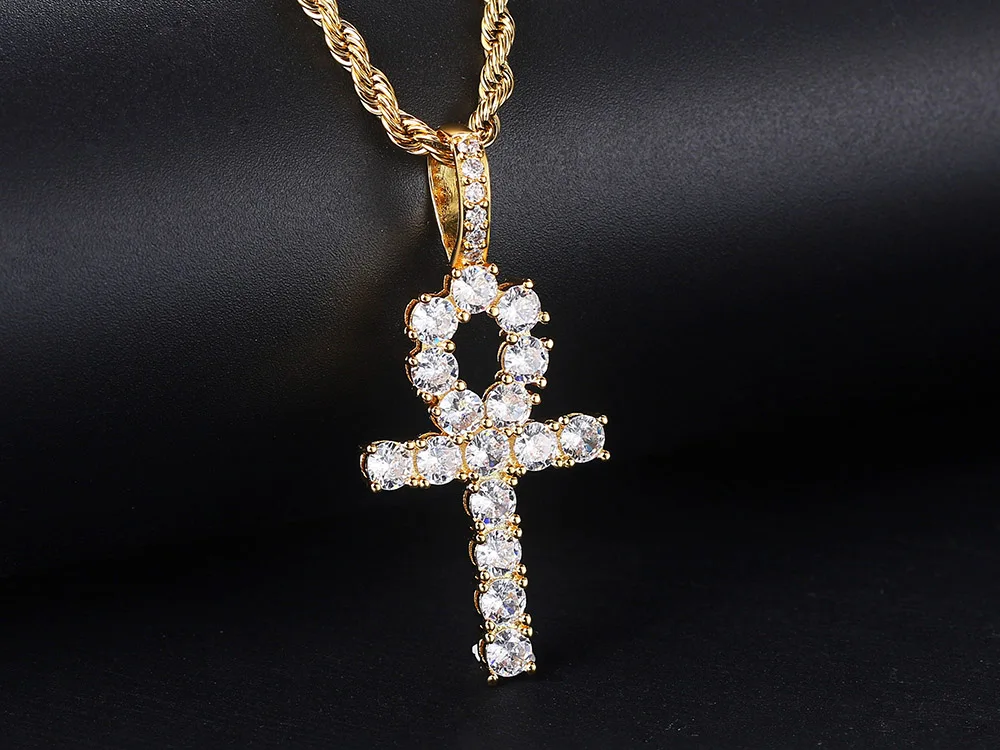 Ankh Cross Necklace For Men Women Luxury Iced Out Zircon Pendant Gold Color Stai