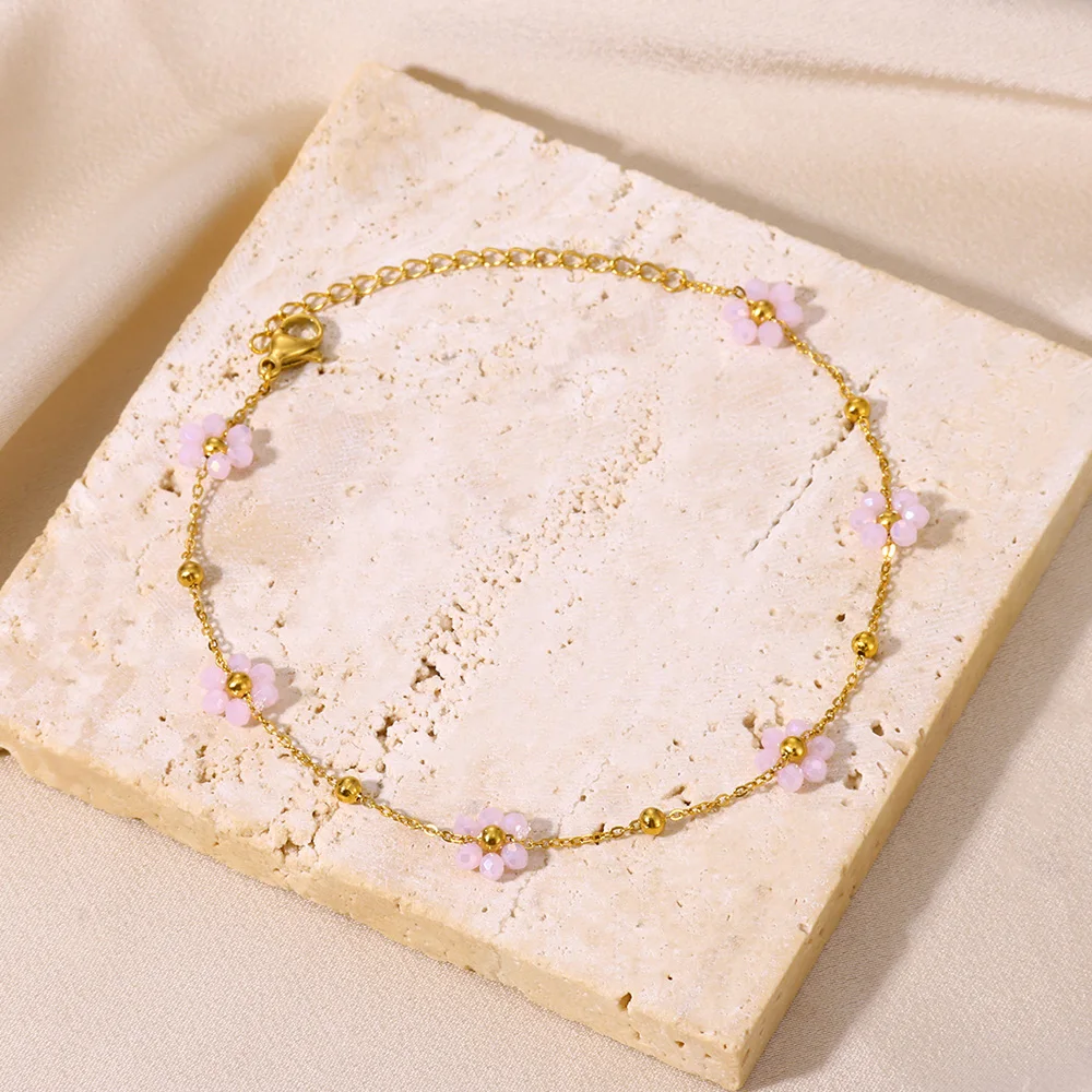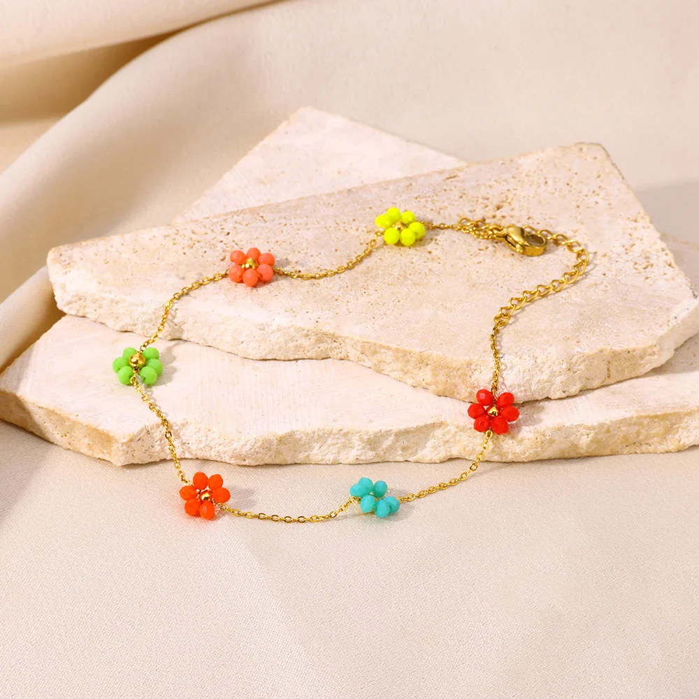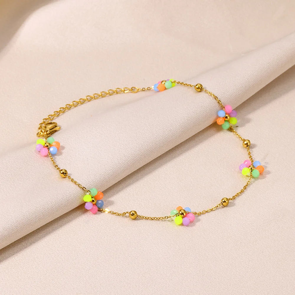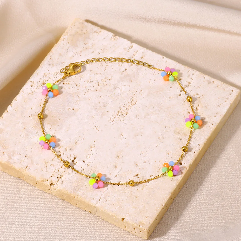 Devil Eye Anklet Colorful Flower Ankle Bracelet Beads Anklets For Women Stainles