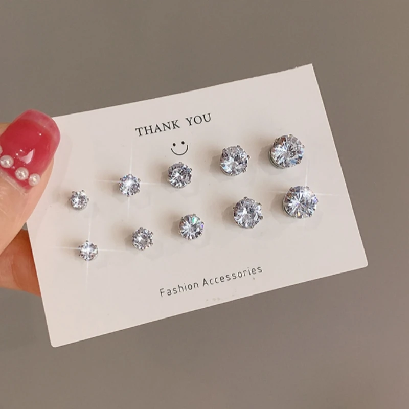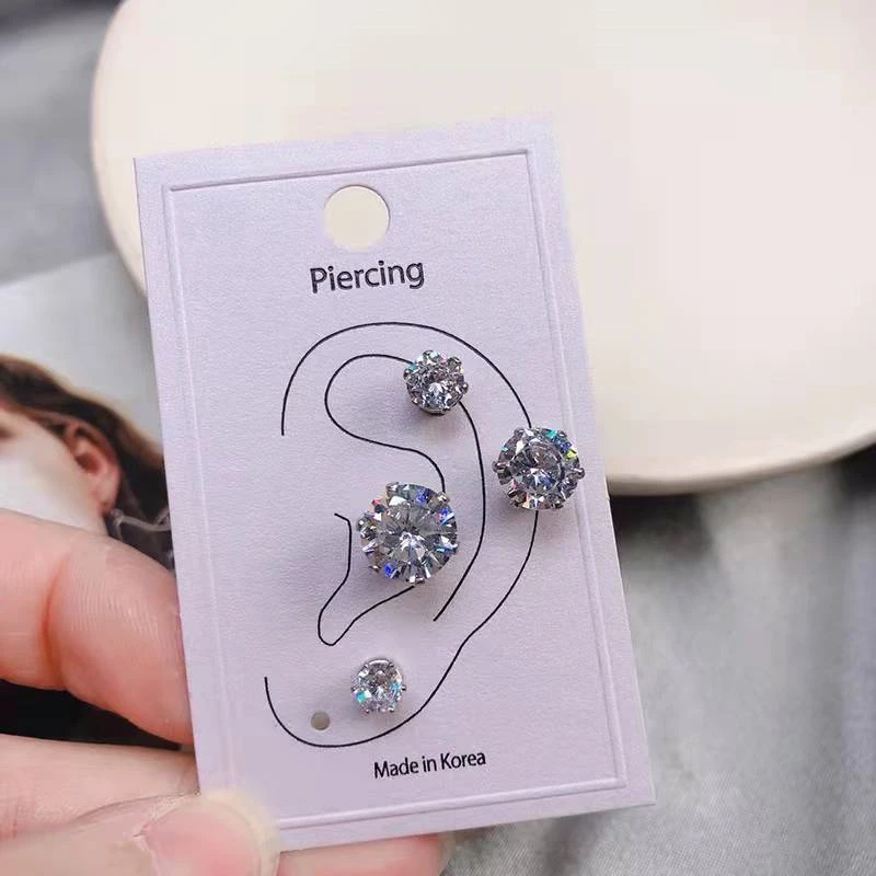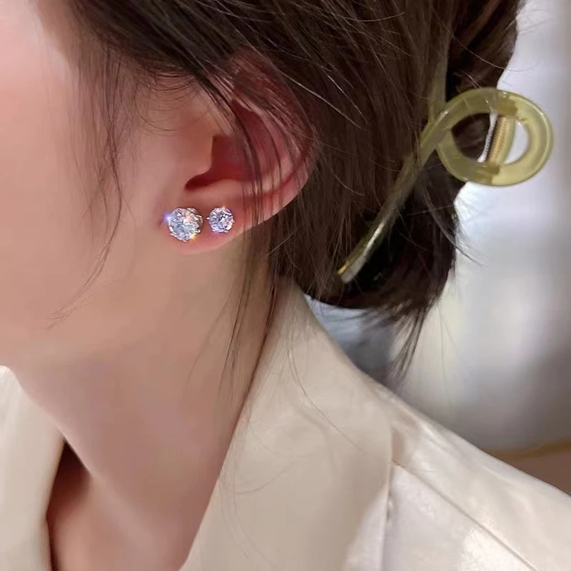 Fashionable and Elegant Women's Crystal Magnetic Ear Clips Luxury Zircon Round E