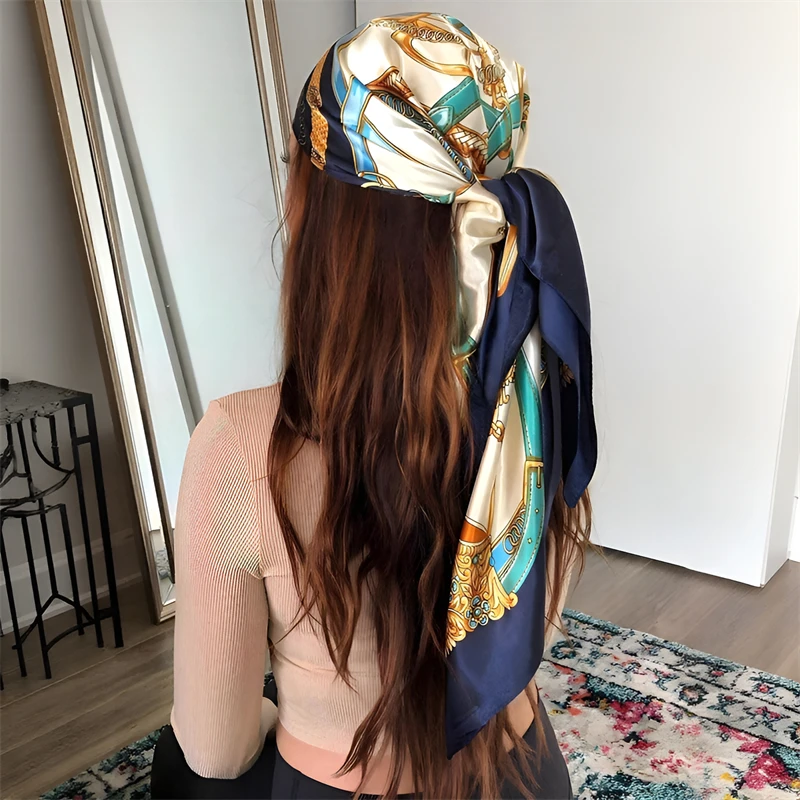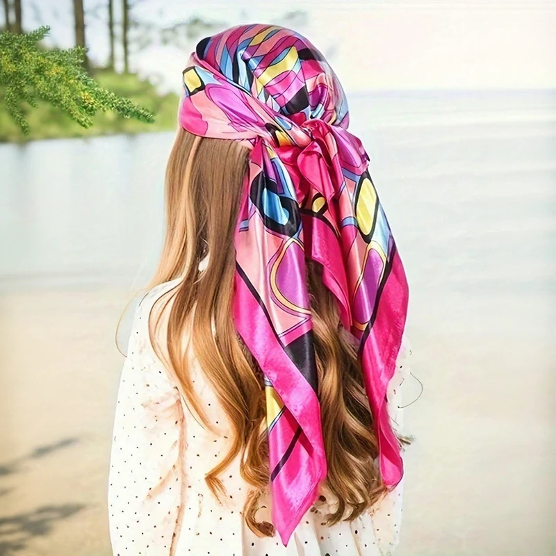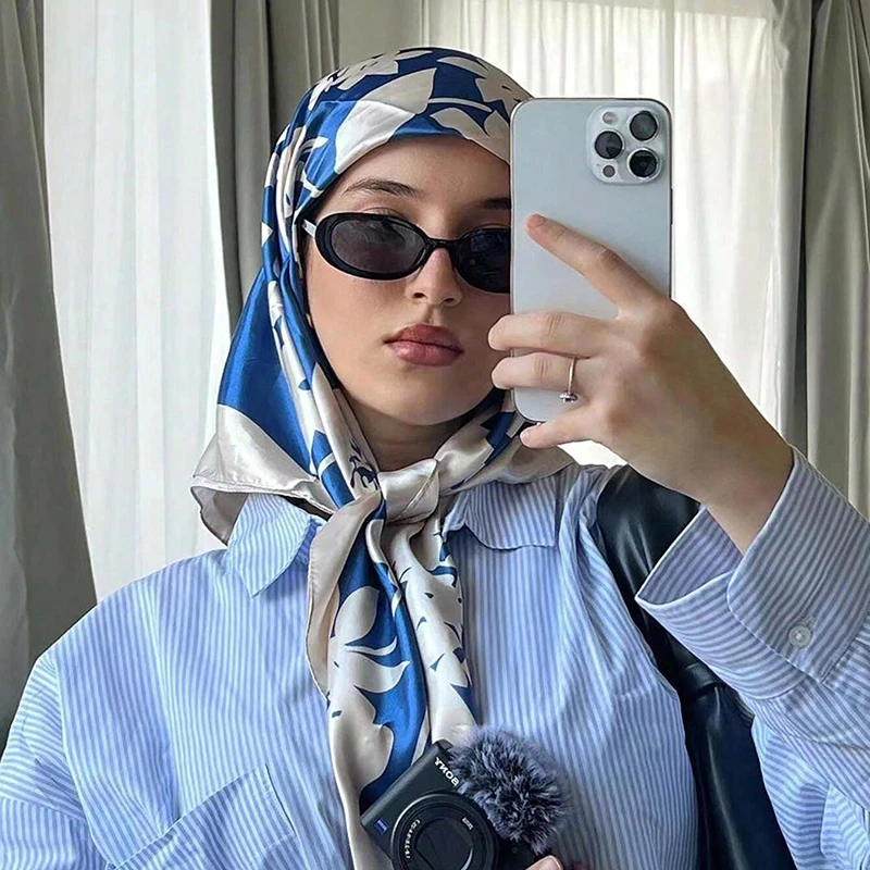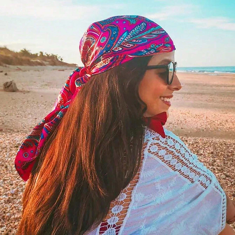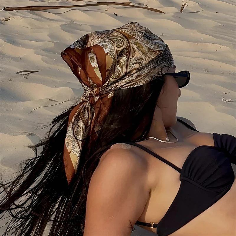 90*90cm Head Scarf Women Luxury Brand Square Silk Foulard Satin Bandana Summer Soft Neckerchief Hijab Hair Scarves For Ladies