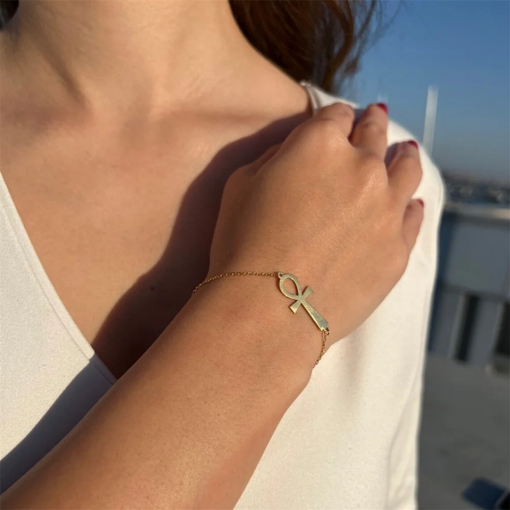 Minimalist Ancient Egypt Ankh Bracelet for Women Gold Color Stainless Steel Cross Wrist Chain Bangle Vintage Egyptian Jewelry