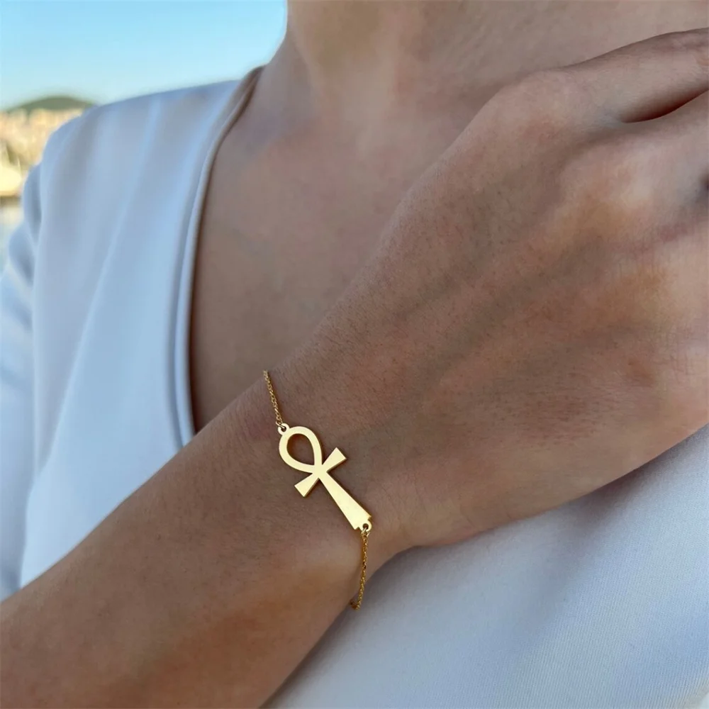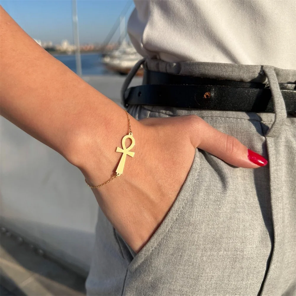 Minimalist Ancient Egypt Ankh Bracelet for Women Gold Color Stainless Steel Cros