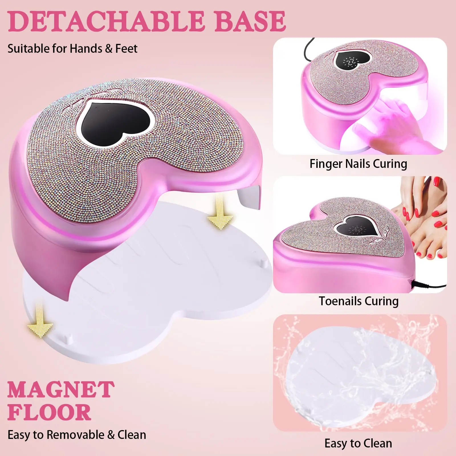 3.Convenient Removable Base : made with quality plastic material, this UV nail polish lamp illustrates durability and longevity, it also has a removable base to help you clean it easily, suitable for home and salon use.