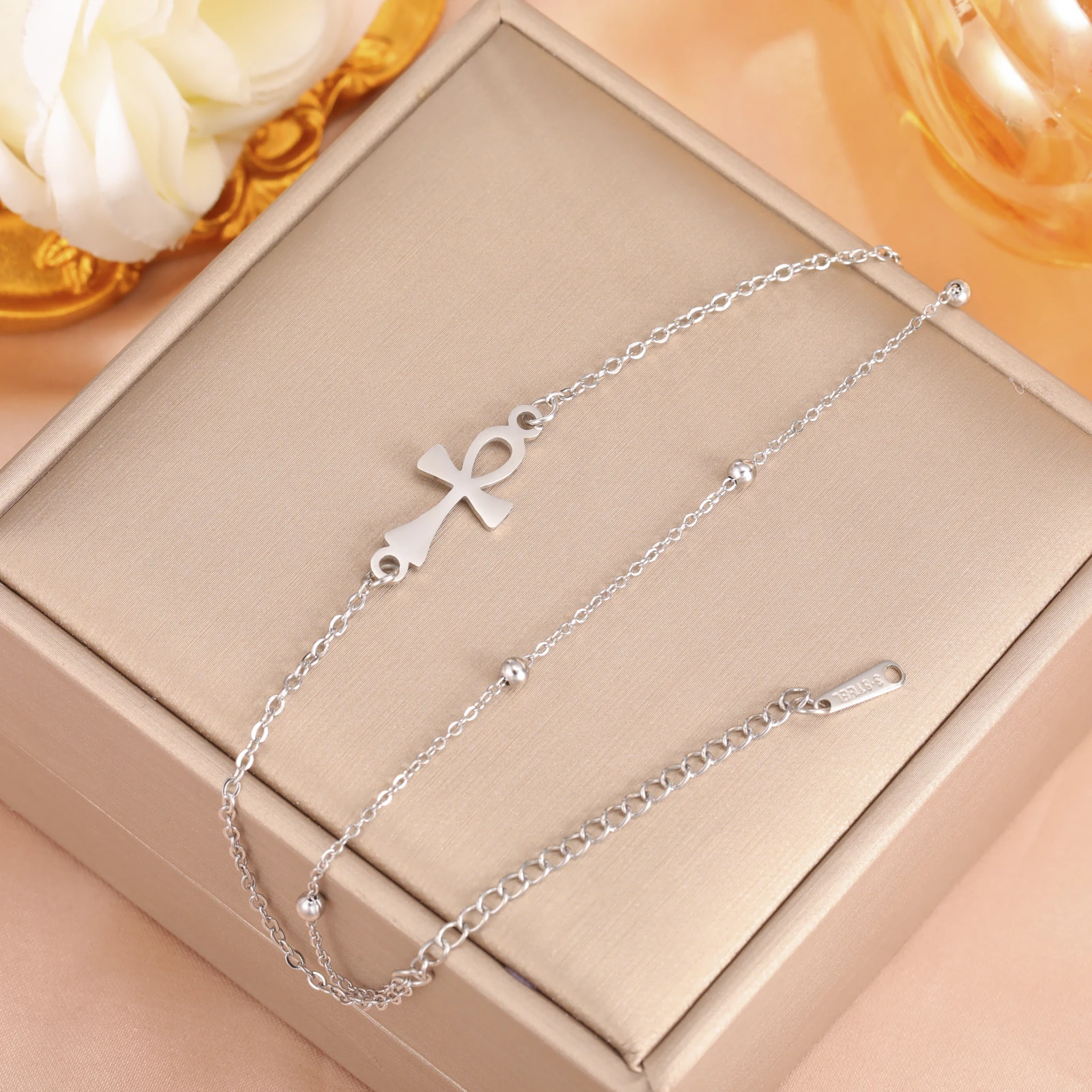 Skyrim Egypt Ankh Cross Charm Bracelets Women Stainless Steel Hand Bracelet Amul