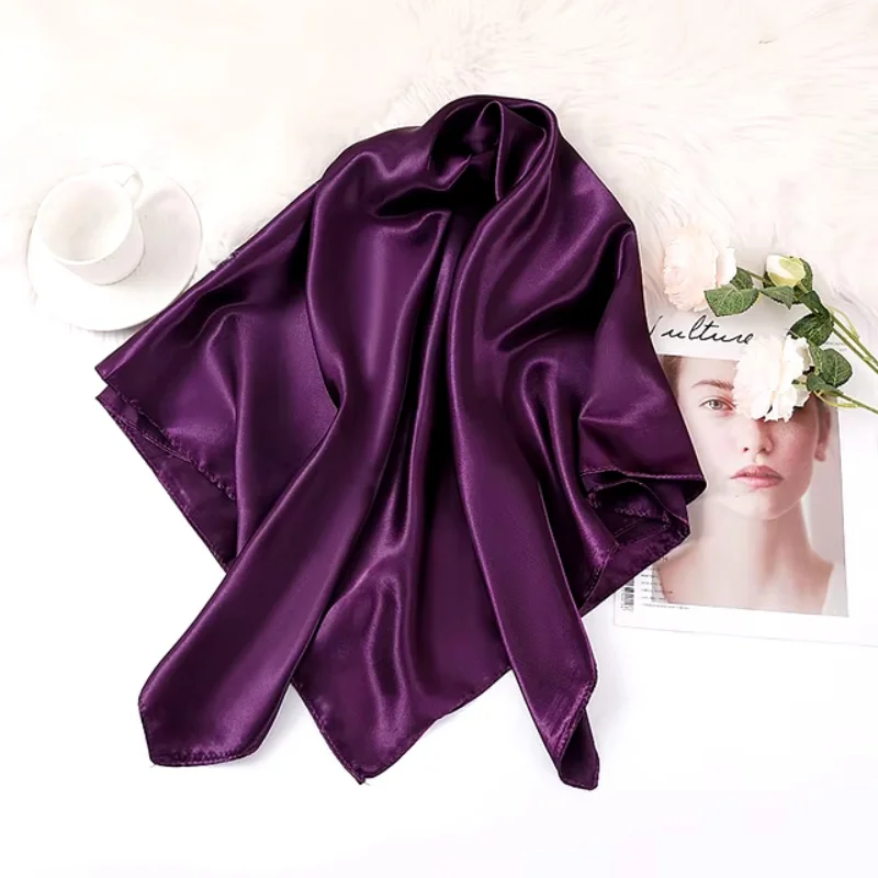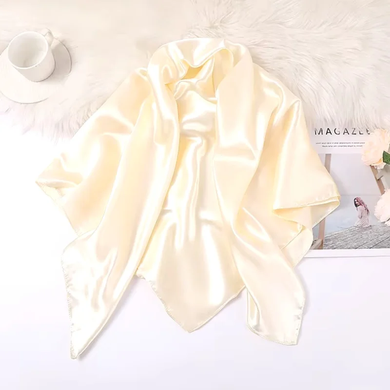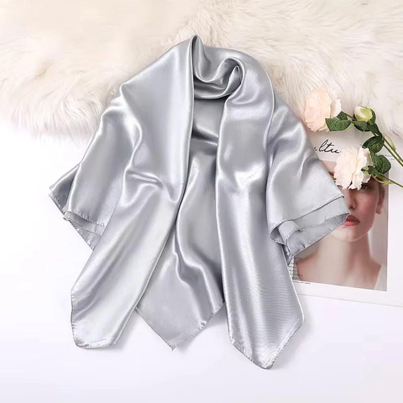 Solid Color 90*90cm Silk Scarf Foulard Satin Bandana Headscarf Cheveux Neckerchi
