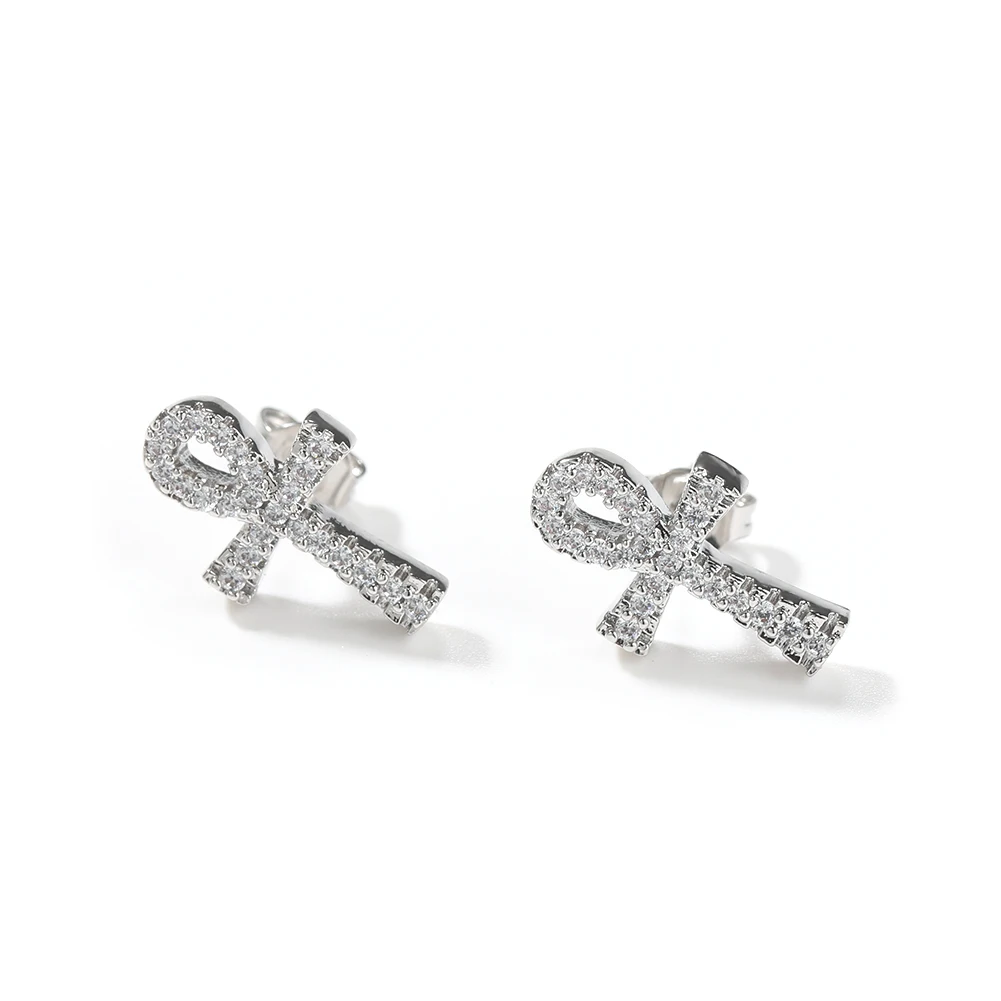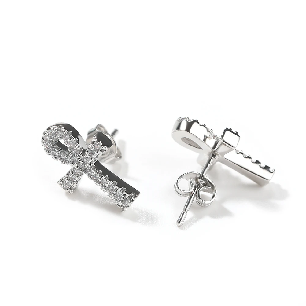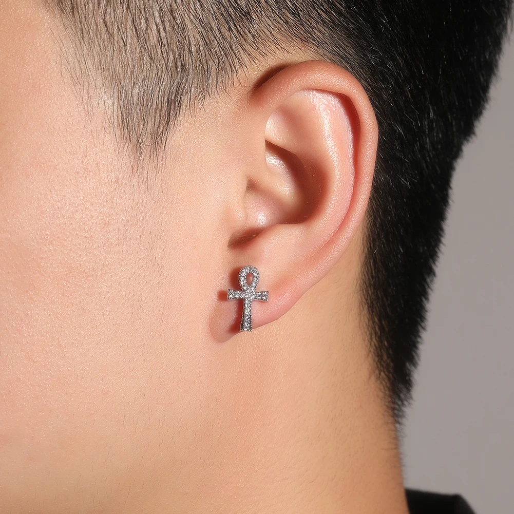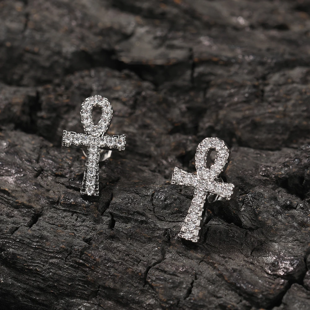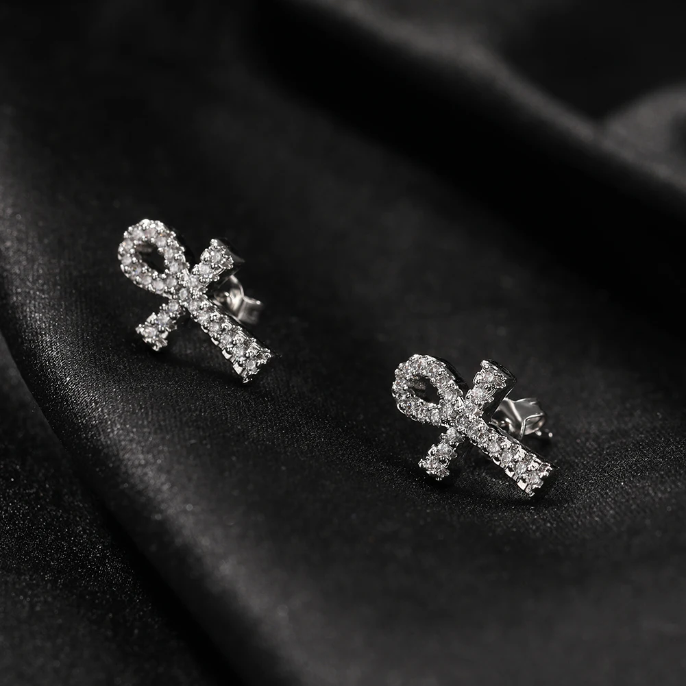 THE BLING KING Egyptian Ankh Cross Earrings Women Men 1Pair Iced Cubic Zirconia