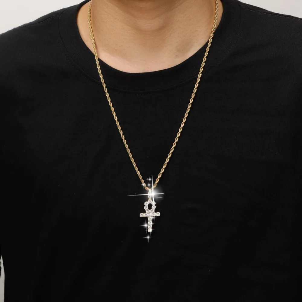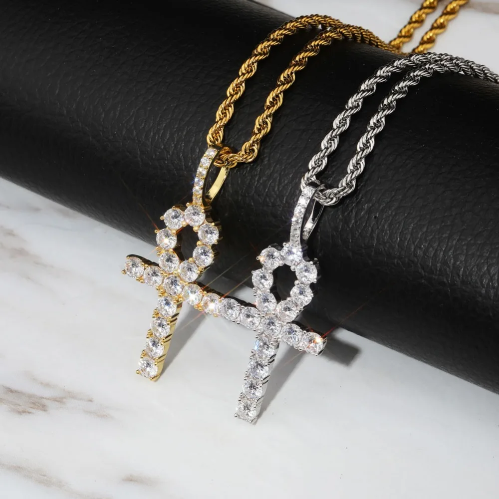 TOPGRILLZ 925 Sterling Silver Iced Zircon Ankh Cross Pendant CZ Egyptian Key of