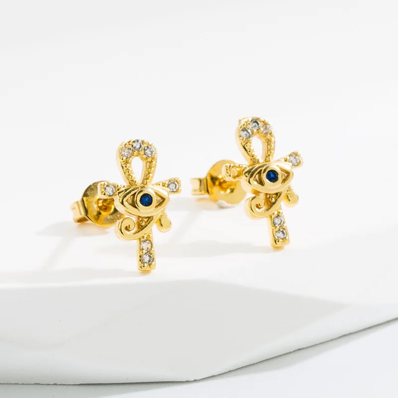YILUOCD Ankh Cross Eye of Horus Stud Earrings for Women Ancient Egypt Ra Udjat